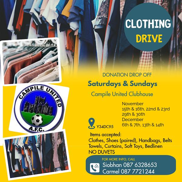 Our next clothing collection will be in December, please keep us in mind if you're having a clear out, the clubhouse will be open on Saturdays & Sundays during match times for you to drop off your items.